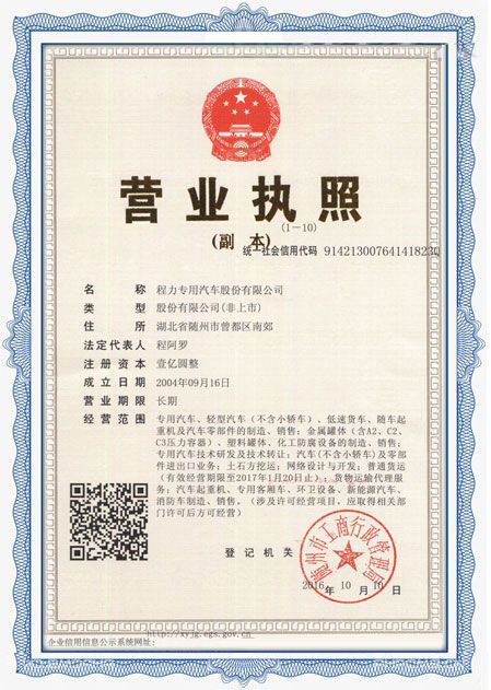 程力專用汽車股份有限公司各類專用汽車的專業(yè)廠家,大型專用汽車廠。國內(nèi)園林綠化、石油化工、市政環(huán)衛(wèi)、壓力容器專用汽車商。注冊“程力威”牌,產(chǎn)品代碼:“CLW”。東風、解放、福田、重汽、陜汽、北奔等公司的重要合作伙伴,主要從事各類專用汽車的業(yè)務(wù),同時也銷售各大型廠家的整車及配件。公司擁有自行出口權(quán),其主導品種有灑水車系列、吸污(吸糞)車系列、垃圾車系列、掃地車系列、油罐加(運)油車系列、高空作業(yè)車系列、清障車系列、隨車吊系列、自卸車系列、教練車系列、半掛車系列、化工車系列、消防車系列、廂式(冷藏車)系列、牽引車系列、粉粒物料車系列、攪拌車系列、壓力容器系列、專用車配件等十八大系列300多個品種車型。同時批發(fā)東風、解放、楚風各種二類底盤。